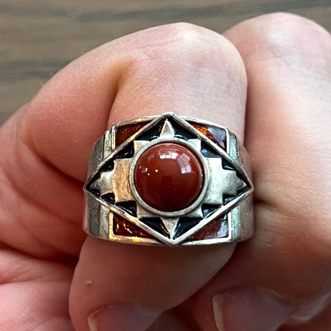 Selger en søt sølvring med opal