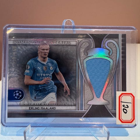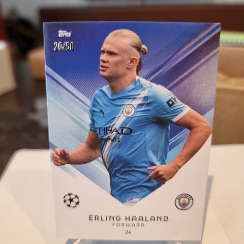 Nummerert fotballkort av Erling Braut Haaland i Manchester City drakt selges for 150 kr.
