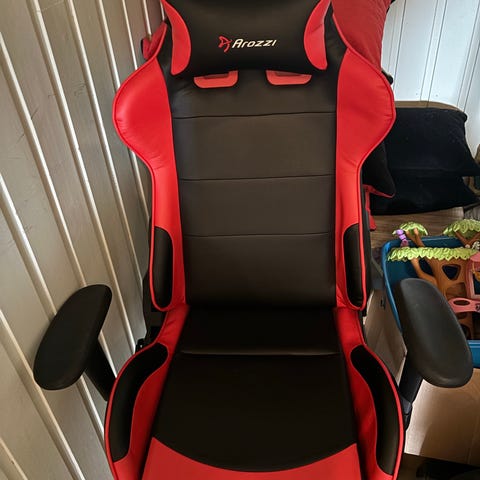 Stolen har et lite synlig merke på fremsiden av ryggen og ene dekselet (kan få det med) knakk festet under montering(dårlig design) har ingen funksjon utenom å gjemme skruer for at d ska se finere ut.