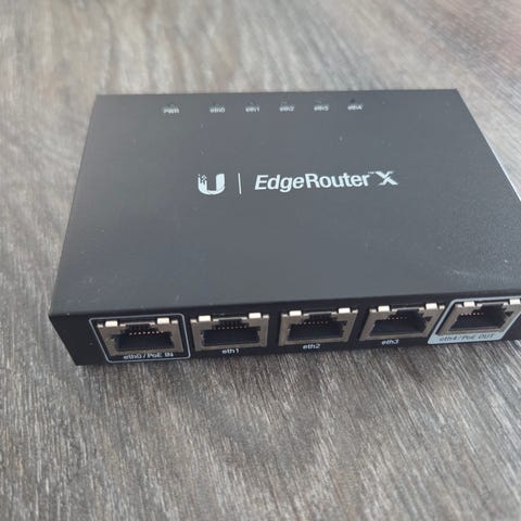 Ubiquiti Edgerouter X er en ruter med fem 1 Gb/s-porter (FTP). Kjører Ubiquitis avanserte operativsystem Edge-OS. Konfigureres via innebygd webgrensesnitt eller kommandolinje. Edge-OS gir mulighet for å segmentere nettverket i VLAN, angi avanserte brannmurregler og overvåke nettverket. Kan konfigureres til å ha to belastningsbalanserte internettilkoblinger. Kan også dele internettilkoblingen med to helt separate lokale nettverk (eller brukes som en ren lag 2-svitsj).