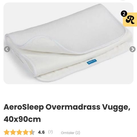 Aerosleep overmadrass/madrassbeskytter 40x90x0,7 cm til vugge/vogn/bedside crib.