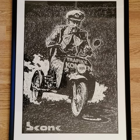 Sigurd Tjøsvoll, Karmøy's oppfinner av Folkeflyet på 1960 tallet. Original tusj tegning A3/300 g. papir. Ferdig innrammet 40x50. #karmøy