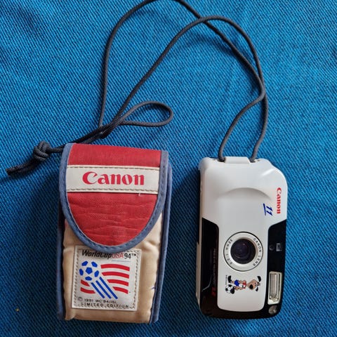Vintage Canon Canonet kamera med manuell innstilling. Kompakt design med metall- og lærfinish. Laget i Japan, modellnummer 1489011. Passer for fotografer som ønsker en vintage filmopplevelse. Et kamera sommer litt snudd på hodet.