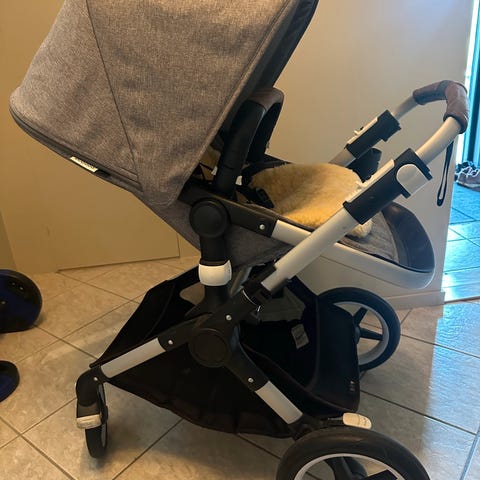 Bugaboo fox selges da vi ikke trenger den lengre. Kjøpte den selv brukt for litt over et år siden. Regntrekk medfølger dessverre ikke, men kan kjøpes enkelt både originalt og uoriginalt. Vi har stort sett kun brukt den som barnehagevogn siste halve året og med bilstoladapter (medfølger ikke) ved levering/henting av storesøsken halvåret før, ellers er den relativt lite brukt i vårt eie da vi har brukt mest søskenvogn. Blir veldig kompakt når man slår den sammen. Understellet kan noen ganger være litt kranglete når man skal slå det sammen, men så fort man lærer seg teknikken ordentlig er det ikke noe problem. Eventuelt har den også en annen måte (nødløsning) å slås sammen på, men det har vi ikke hatt behov for i vårt eie. Grå farge på disse er en stor fordel mtp solbleking, som er et kjent problem på disse vognene, denne er svært lite solbleket, med unntak av understellet(se bilde).