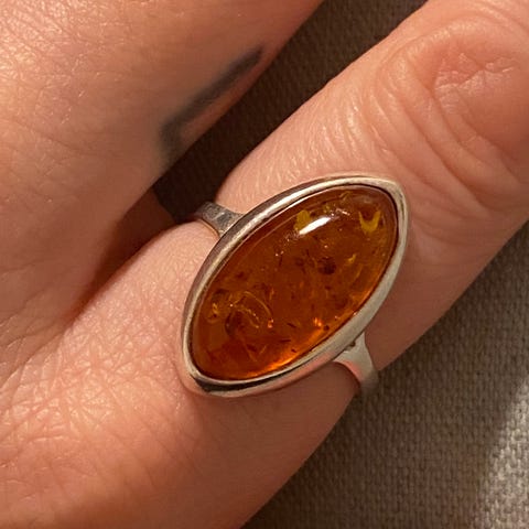 Vintage sølvring med stort rav-stykke