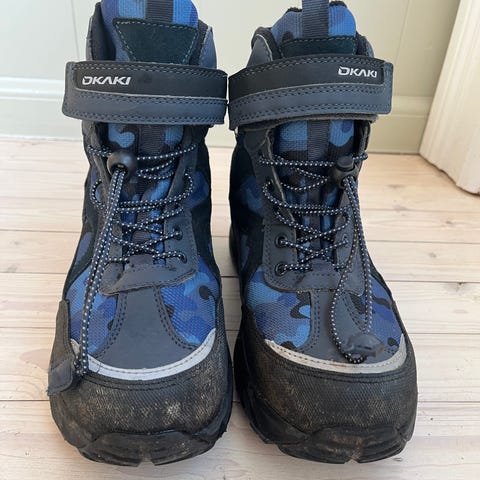 Varme og vanntette støvler med hurtigsnøring fra Okaki - pent brukte, og mye bruk igjen. Støvlene har sympatex, som gjør dem vanntette og pustende.