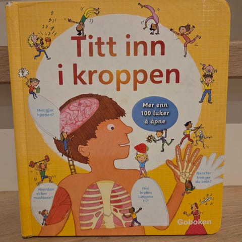 Byggeklosser Kroppen vår læringsspill som illustrerer menneskets anatomi med skjelett og organer. Spillet inneholder deler som kan settes sammen for å lære om kroppens oppbygging.