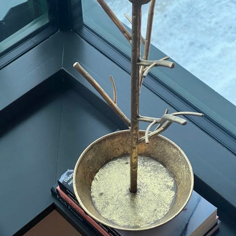 Elegant og eksklusivt dekorasjonsstativ i gullfarget metall.