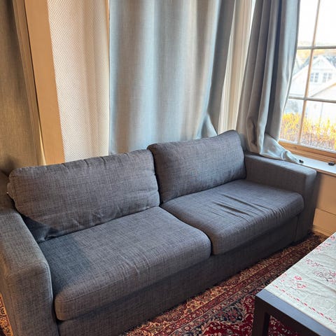 Pent brukt 3-seter fra IKEA. Lite brukt, stått mest til pynt. Sofaen er demonter