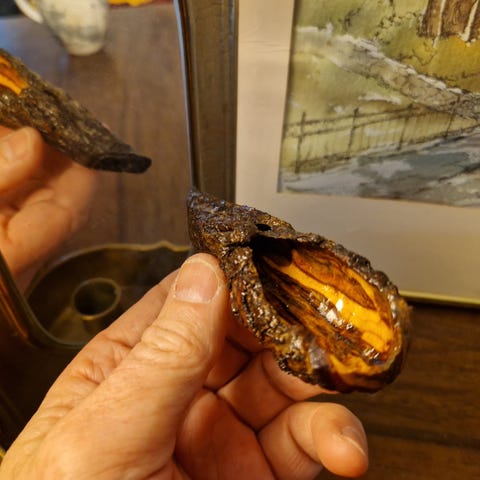 Et lite kunstverk i seg selv. En skje med enkle linjer med funksjon fusjonert med og inspirert av linjene til stykkets opprinnelige organiske form - del av en rot.