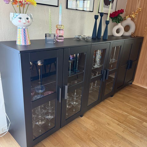 Sjenk med bruksmerker og eit øydelagt hengsle. Fort å fikse for den som vil. Bruksmerker er å finne.