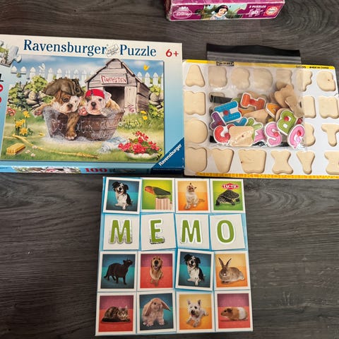 Mykt puslespillgulv i skum med bokstaver og tall, godt egnet for barn. Kan brukes både som lekematte og til læring av alfabet og tall. Delene kan settes sammen på ulike måter, og settet selges komplett. Pent brukt og i god stand.