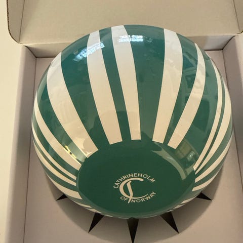 Stripes-kolleksjonen er designet av den norske emaljekunstneren, Grete Prytz Kittelsen, som samarbeidet med Cathrineholm på 50- og 60-tallet.