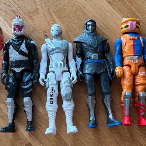 To actionfigurer i solid plast, godt egnet for lek. Figurene er pent brukt og i god stand, med bevegelige armer og ben. Selges samlet