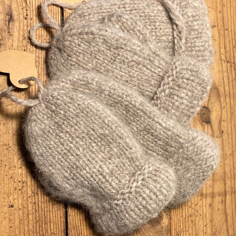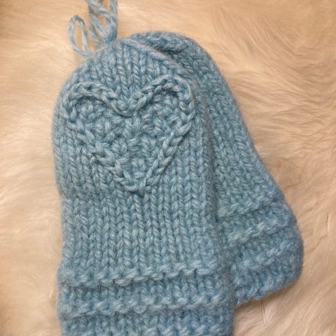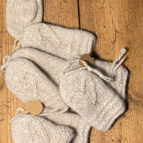 Hjemmestrikket Tova Hjertevotter ♥️med mansjett. Strikket i Finull fra Rauma garn. Dette er et norsk ullgarn spunnet i Romsdalen. Super kvalitet. Strikket på pinne 3. Farge: Beige. Myke, tynne, gode&varme. Gode votter til barn i barnehagen ☃️