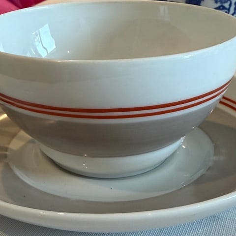 Retro emaljert kopp og fat.