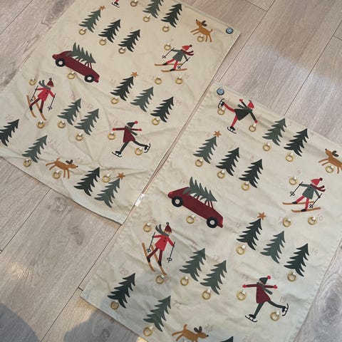Kjempefint oppheng til en pakkekalender. Kan festes med krok på baksiden. Har 24 kroker på forsiden til en pakkekalender. Er som ny, usikker på om den er brukt faktisk. Kjøpt for kanskje 5-6 år siden. Oppbevart på tørt loft.