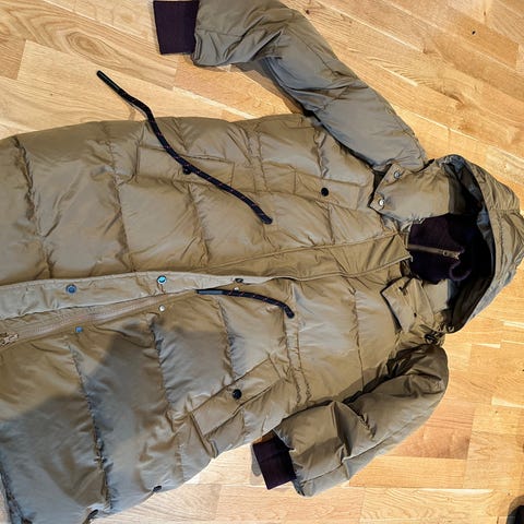 Tommy Hilfiger Annet yttertøy i størrelse L for kvinner. Jakken er rød og laget med dunfyll, som består av 70% dun og 30% fjær. Ytterstoffet er 100% polyester, og fôret er også 100% polyester. Produktet er designet for å gi varme og komfort. Selger den grunnet den har blitt for stort. Selger den for 1999, ny pris 3749 på Zalando.