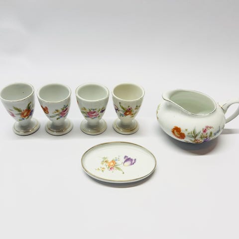 Design: Settet har et detaljert blomstermotiv og en dekorativ gullkant.