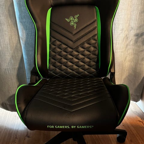 Lite brukt arozzi gaming stol i blå, sort, hvit. Ypperlig til gaming og kontorbruk. Justerbart i ryggen. Kan leveres hjem til deg i Oslo/akershus gratis