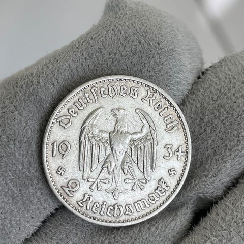 Selger 10 stk 2 Reichsmark i sølv.