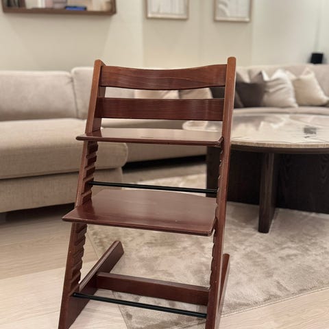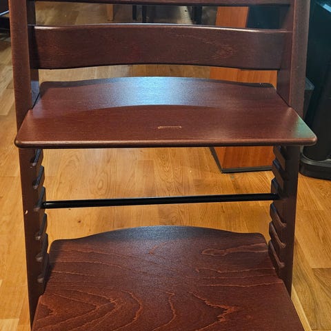 Selger en relativt pent brukt tripp trapp stol I den populære fargen stormgrey. Gir et nydelig preg og farge til spisestuen!