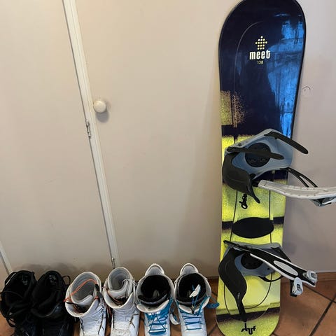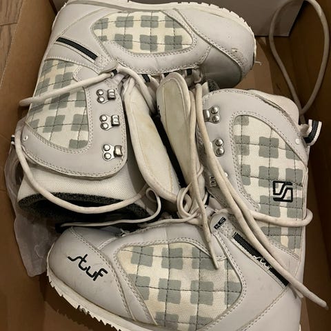 Snowboardsko som ble for små før vi fikk brukt dem. Merket er Stuf. Størrelse 215 mondo, ca 33/34.
