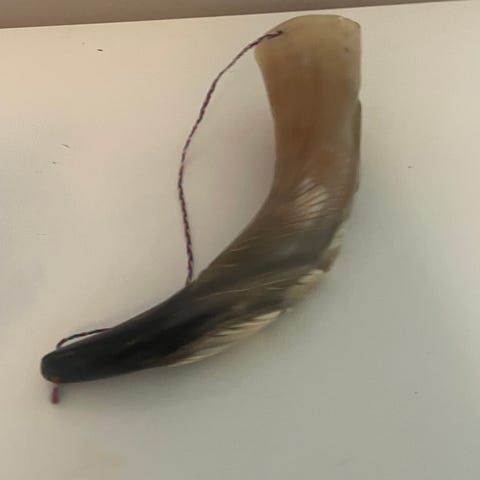 Flott utskåret/pyntet horn.Arvet så usikker på alder og fra hvor ,men flott er det-bud