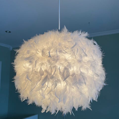 Lampen er svært lite brukt og har stått mest til pynt, så det er sannsynligvis mye bruk igjen i pærene.