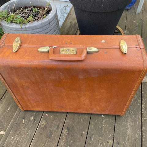 Dette er en vintage Samsonite-koffert, sannsynligvis fra 1960-tallet. Slike kofferter er populære samleobjekter på grunn av deres holdbarhet og retrostil.