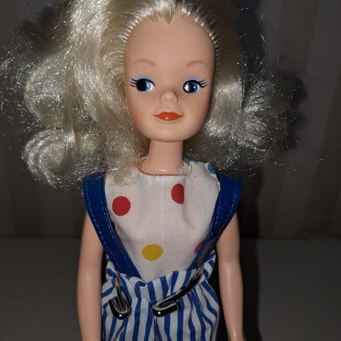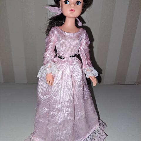 Veldig fin Vintage Sindydukke fra 80-tallet med original kjole.