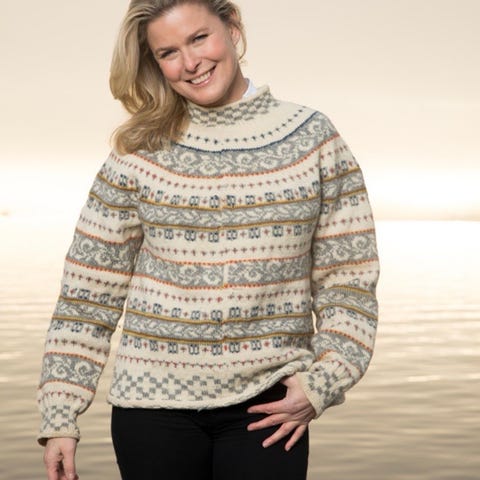 Lekker strikket design genser i 100 % ull kjøpt på Norway Design. Som ny og nesten ubrukt. Har ligget nedpakket og beskyttet. Kjent snøkrystall motiv fra Vigdis Design. Str M, men kan også passe str L.