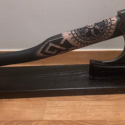 Det solide skaftet gir utmerket balanse og kontroll, noe som gjør Stor Ridderøks like imponerende i hånden som i en utstilling. Enten den er en del av samlingen din eller midtpunktet i din egen legende, representerer denne øksen essensen av mørk heroisme.