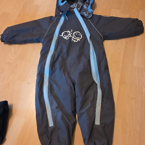 God og romslig dress som fortsatt har mye brukstid igjen. Den har noen flekker som ikke har gått bort i vask, samt et lite hull på høyre arm (se bilde). To av knappene på fotstrikken er byttet ut.
