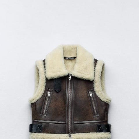Zara polstret vest med høy krage og ermeløs design. Sidelommer med glidelås. Justerbar nederkant med elastiske snorer og stoppere. Glidelåslukking foran. Str. M. Kun prøvd på