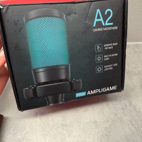 Mikrofonen har et integrert stativ og USB-tilkobling, egnet for bruk med PC og andre kompatible enheter.