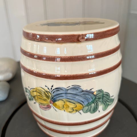Ny, stor krukke i steingods. Passet ikke inn her likevel. Ny pris er 2000kr, selges ikke lenger. Til innendørs bruk.