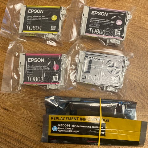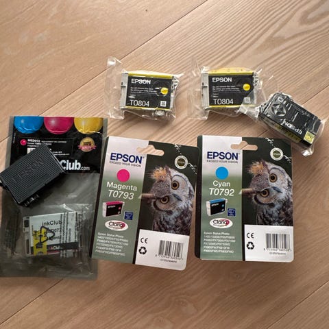 Originale Epson 104-blekkpatroner til EcoTank-skriver. Selger 3 farger.