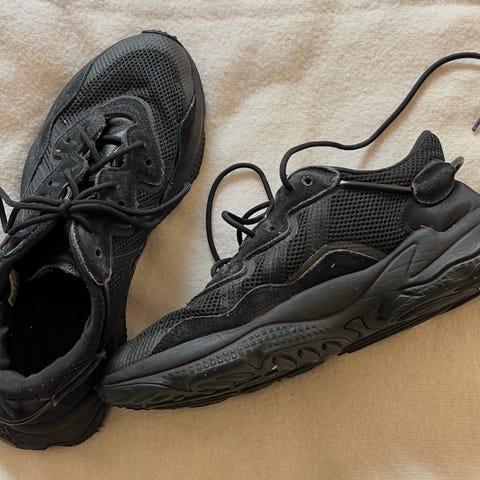 Selger et par stilige Adidas Ozweego i svart farge.
