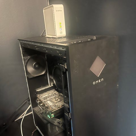 MSI stasjonær PC med svart kabinett og røde detaljer. PC-en er designet for gaming og alt annent.