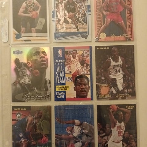 Selger 31 stk. forskjellige Basketball kort fra seriene, Skybox, Skybox USA og Skybox Z-Force. Fra år 1990-1998. Kortene er i god kvalitet. Sender med kortholder mappene. Mange gode spiller blamdt kortene som, Scottie Pippen, Anfernee Hardaway, ( 7 stk.) Dennis Rodman, Tim Hardaway, Hakeem Olajuwon, Charles Barkley, Gary Payton, Vin Baker, Glenn Robinson, Mitch Richmond, Patrick Ewing, Jamal Mashburn, Chris Webber, en del Rookie, med mange flere. Selger for 140 kr.