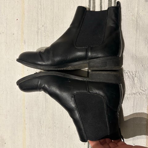 Nesten nye varmforet chelseaboots fra Din Sko. Ble bomkjøp på størrelsen, disse ble litt for store for meg, men det er for sent å returnere de. Kun brukt noen få turer utendørs. De har et for på innsiden, så de er veldig gode å varme, selv med kortsokker. Nypris er 649,- De er allerede sprayet med impregnering slik at de tåler regn og snø enda bedre. Vil si de er true to size, for jeg gikk opp en størrelse for å ha plass til tykke sokker, men det var ikke nødvendig likevel.