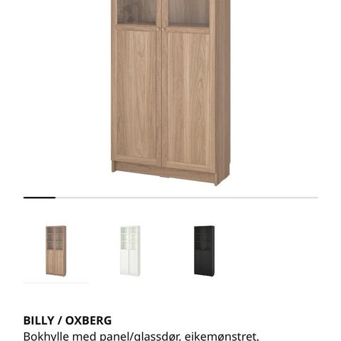 Selger ett Billy / Oxberg vitrineskap fra IKEA. Vi har satt to ved siden av hverandre, men de kan fint stå hver for seg også.