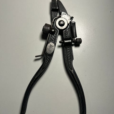 Eldre tysk viggetang / viketang uten produsentmerking, men merket med den tyske patentmerkingen D:R:G:M (før 1949).