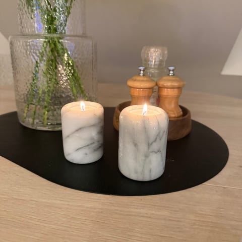 Selger disse vintage telys-holderne i marmor grunnet flytting 😊