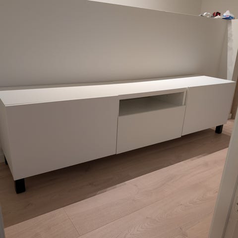 Laget hjemmelaget løsning for ledninger fra benken til tv😅 (se bilde). Vises ikke fra utsiden 😊