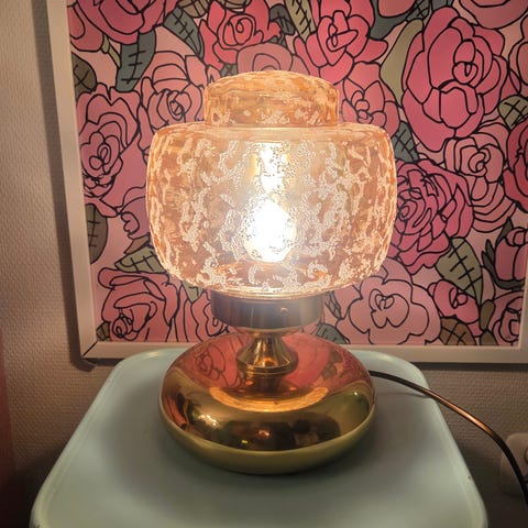 Drage bordlampe. Ca 19cm høg, ca 18cm bred. 230V