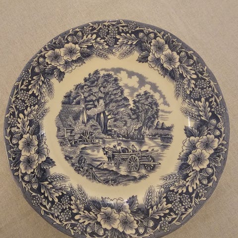 Diameter 24,5 cm, egnet som middagstallerkner. Svært fin stand uten riper eller flis.
