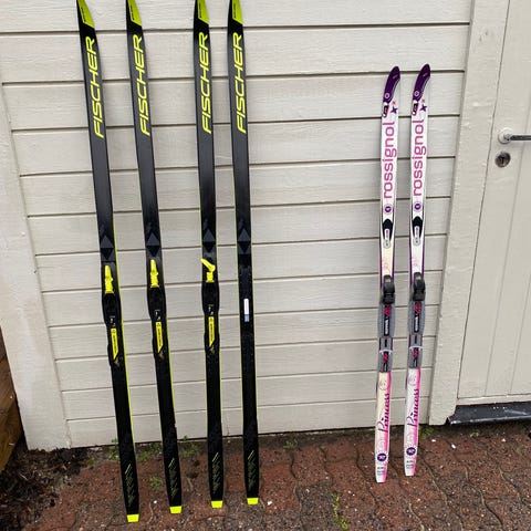 Skiene er 160 cm lange og er laget for syklister opptil 70 kg.lekre farger: Blå, hvite og svarte. Laget i Norge.