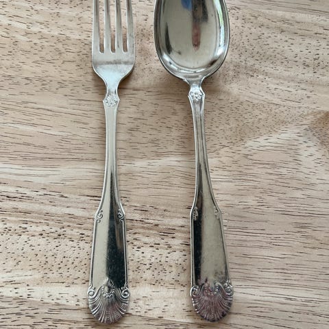Minnesølv, 1 spiseskje og 1 koldtgaffel